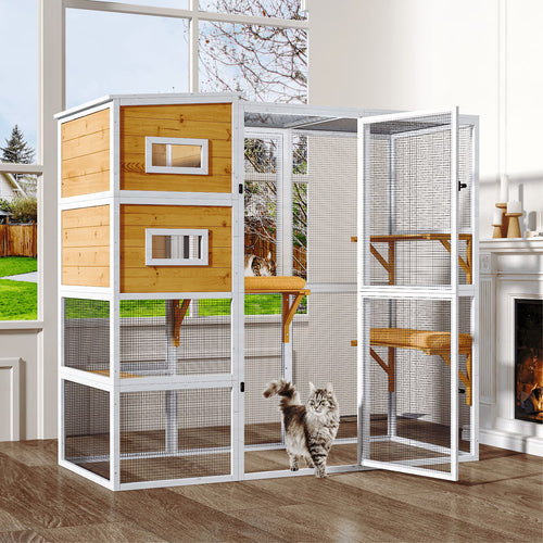 TIMHAKA 4 Tier Catio Outdoor Cat Enclosure, DIY Large Cat Cages Indoor with Window for 3 Cats, Cat Playpens with Resting Box, Platform, Waterproof Roof & Large Door, 76" L x 32.9" W x 70.8" H, White 4 stars out of 9 reviews (4.0)